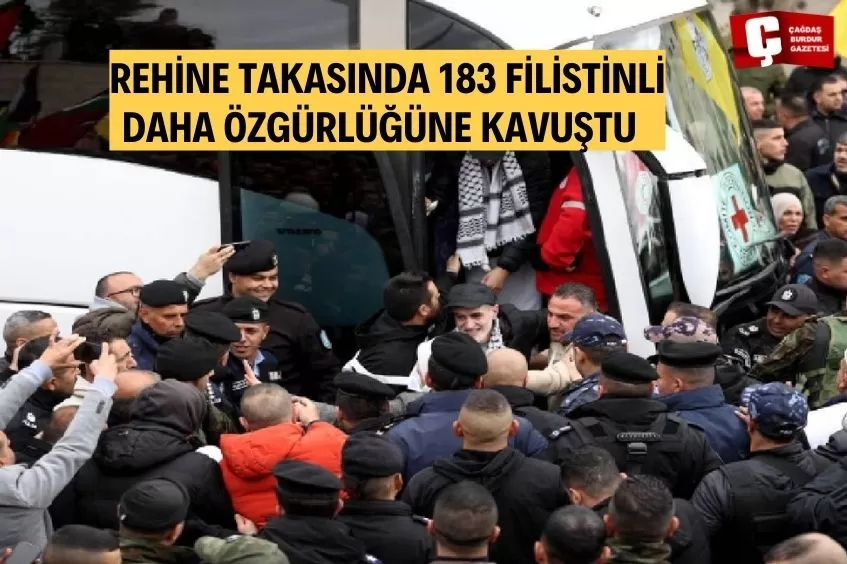 Hamas ile katil İsrail arasındaki esir takasının beşinci turunda, İsrail hapishanelerindeki 183 Filistinli esir serbest bırakıldı. Filistinli esirlerden 7'sinin sağlık durumlarının kötü olması dolayısıyla hastaneye kaldırıldığı bildirildi.