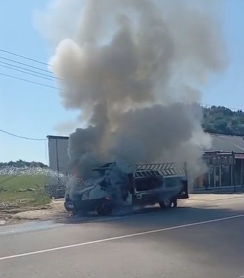 KARTON YÜKLÜ KAMYONET SEYİR HALİNDEYKEN YANDI