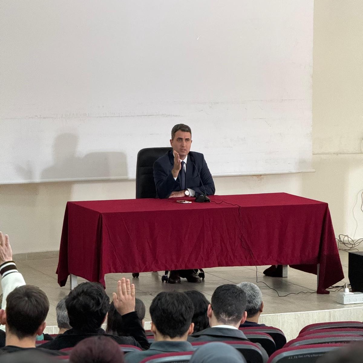 Bucak İlçe Kaymakamı Sayın Can Kazım Kuruca, MAKÜ Bucak Emin Gülmez Teknik Bilimler Meslek Yüksekokulu’nda eğitim gören öğrencileri ziyaret ederek konferans salonunda bir araya geldi.