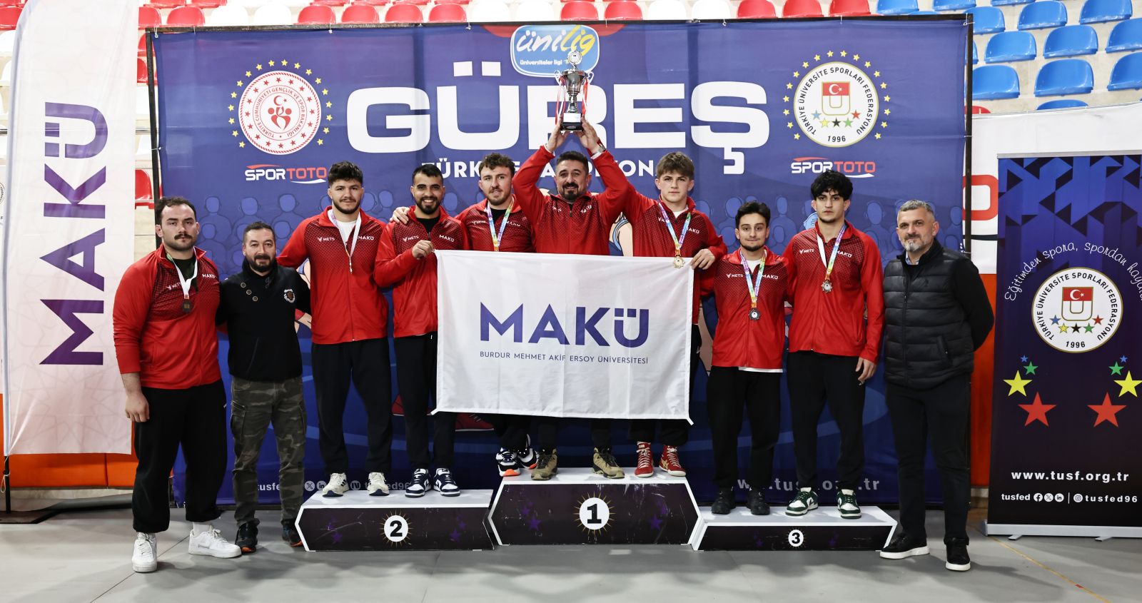Burdur’da düzenlenen ÜNİLİG Yeşilay Güreş Türkiye Şampiyonası’nda ev sahibi Burdur Mehmet Akif Ersoy Üniversitesi önemli bir başarıya imza attı. Serbest stil müsabakalarında mücadele eden MAKÜ sporcuları, 3 altın ve 2 bronz madalya kazanarak dikkat çekti.