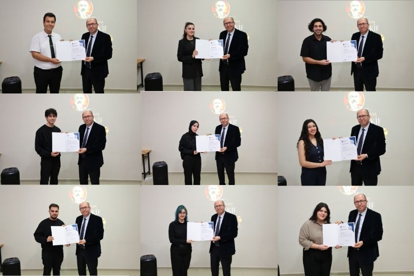 Programın sonunda Rektör Yardımcısı Prof. Dr. Oğuz Gürsoy, başta Tiyatro Topluluğu Başkanı Gamze Atar olmak üzere şiir dinletisinde görev alan tüm topluluk üyelerine teşekkür ederek, etkinliğin Mehmet Âkif Ersoy’un fikir ve sanat dünyasını genç kuşaklara aktarması açısından büyük önem taşıdığını vurguladı. Prof. Dr. Gürsoy, katkılarından dolayı öğrencilere teşekkür belgelerini takdim etti.