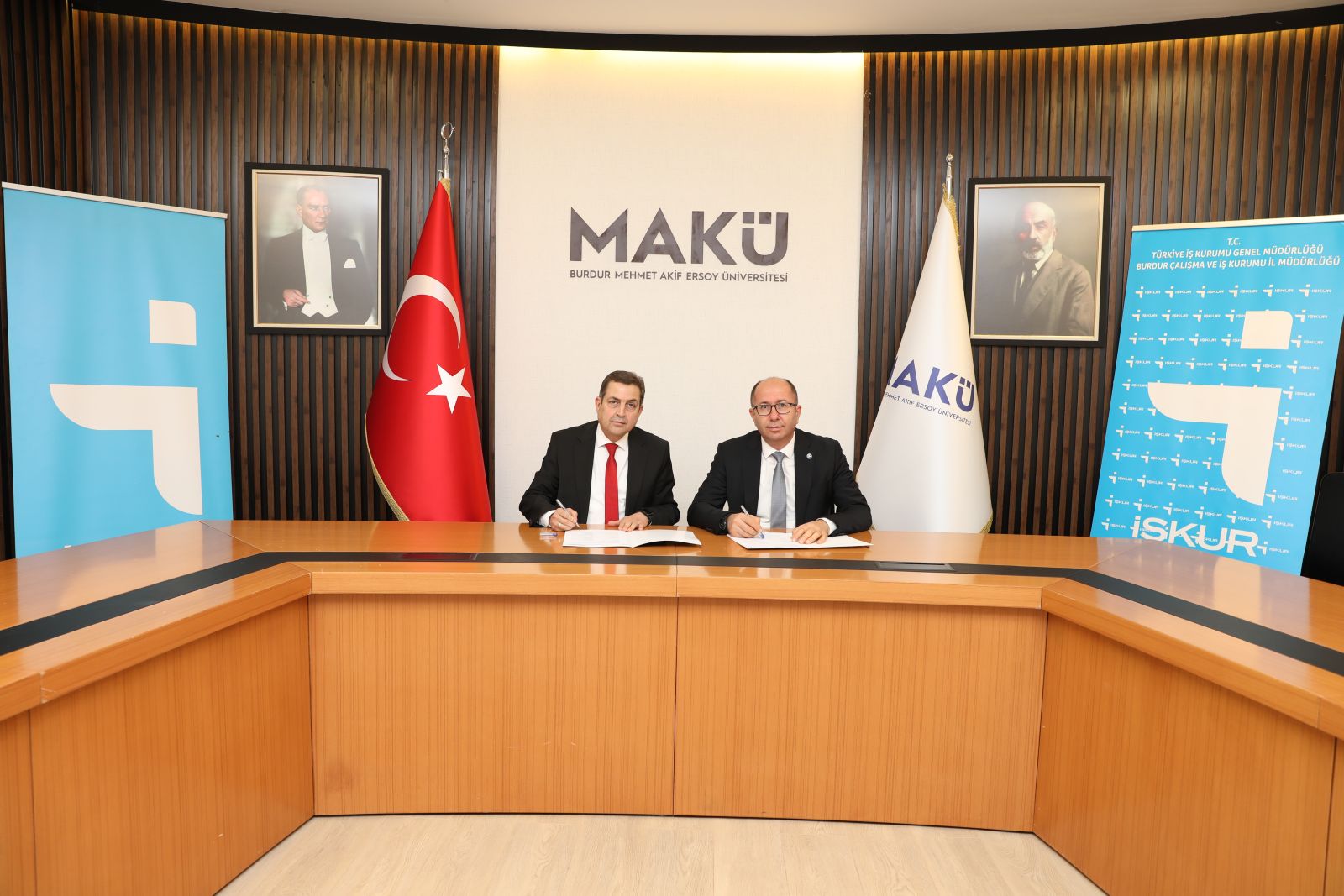 Cumhurbaşkanı Recep Tayyip Erdoğan’ın talimatlarıyla üniversite öğrencilerine yönelik olarak hayata geçirilen ‘İŞKUR Gençlik Programı’ kapsamında, Burdur Mehmet Akif Ersoy Üniversitesi (MAKÜ) ile Burdur İŞKUR İl Müdürlüğü arasında iş birliği protokolü imzalandı.