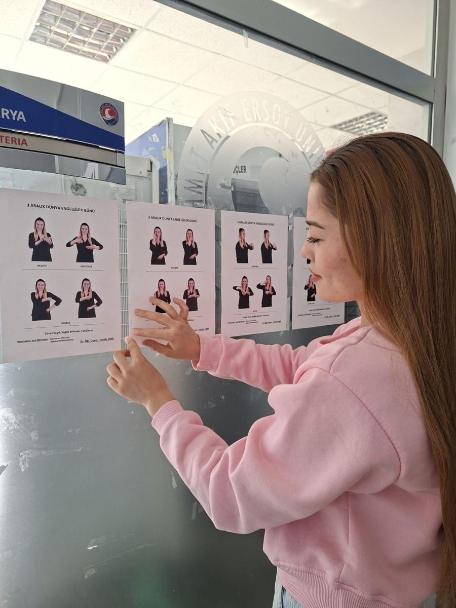 Sağlık Bilimleri Fakültesi, Eğitim Fakültesi ve Diş Hekimliği Fakültesi’nde çeşitli bölümlerden öğrencilerin yer aldığı etkinliklerde, İşaret Dili kullanımı ve iletişimde erişilebilirliğin önemi üzerine bilgilendirme çalışmaları yapıldı. Ayrıca Dr. Erbil’in akademik danışmanlığını yürüttüğü Kişisel Gelişim Topluluğu öğrencileri de organizasyona aktif destek verdi.