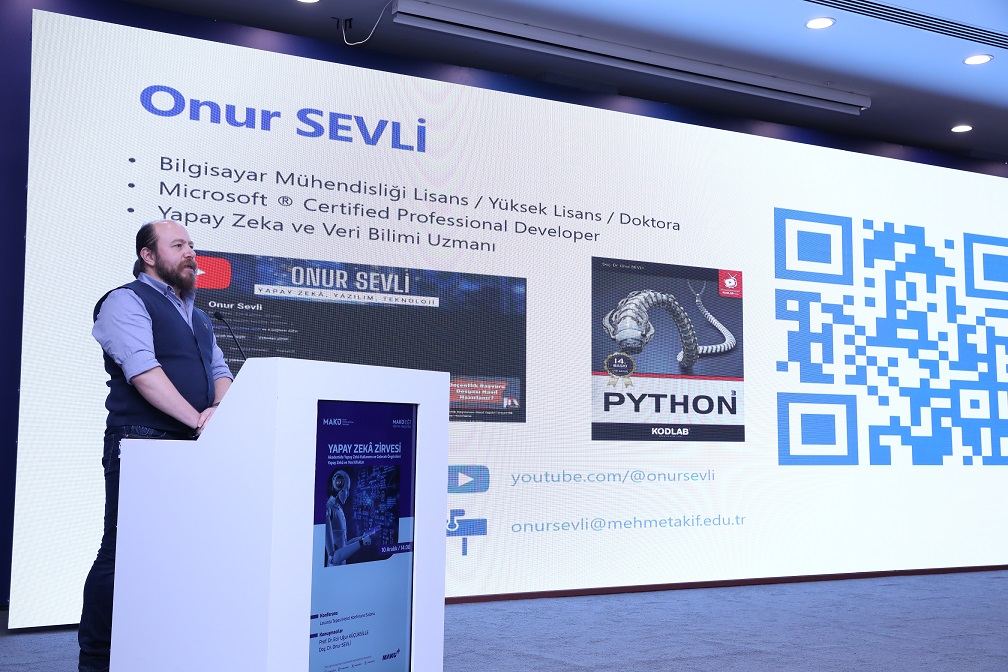 MAKÜ Mühendislik-Mimarlık Fakültesi Öğretim Üyesi Doç. Dr. Onur Sevli, konuşmada yapay zekânın tarihsel gelişimi, temel kavramları ve güncel uygulamalarına ilişkin bir sunum gerçekleştirdi. Yapay zekânın sanıldığı gibi yeni bir teknoloji olmadığını belirten Sevli, geniş kitlelerin bu kavramla özellikle ChatGPT gibi araçlar sayesinde tanıştığını ifade etti.