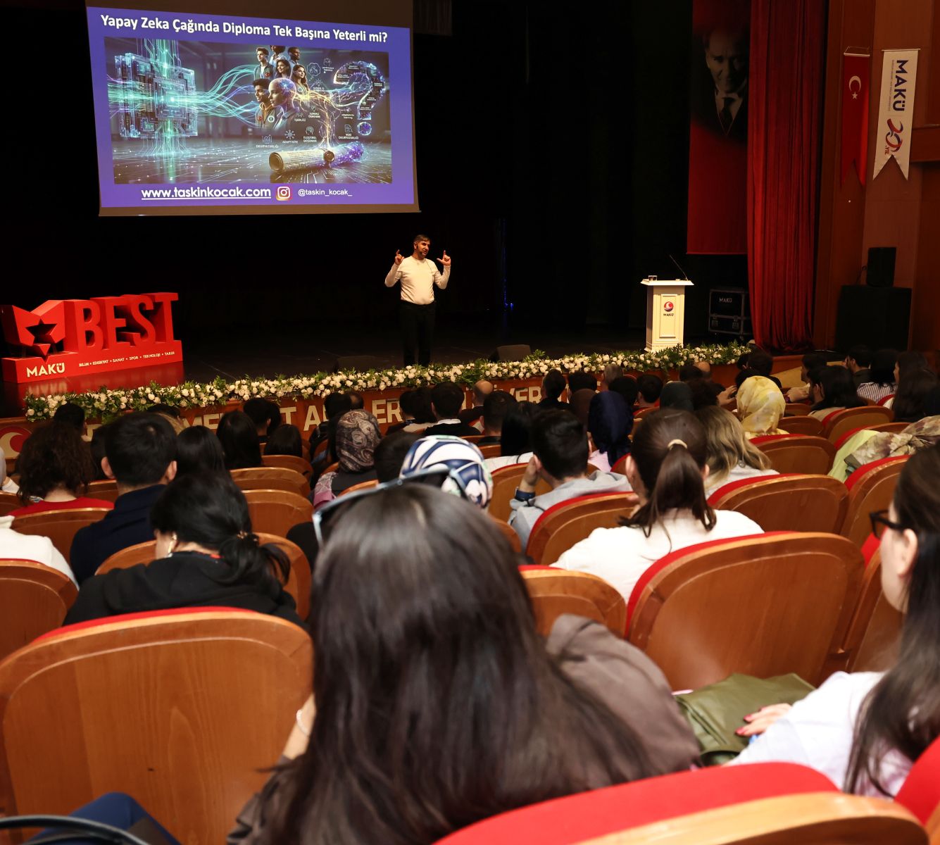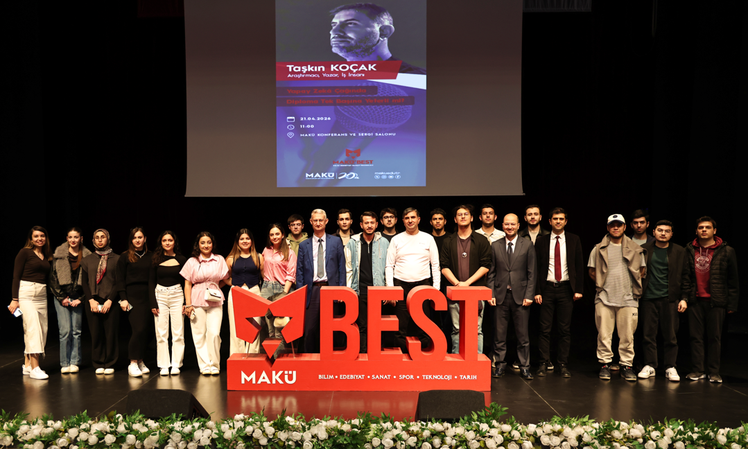 Burdur Mehmet Akif Ersoy Üniversitesi (MAKÜ), öğrencileri bilim ve teknoloji dünyasının güncel konularıyla buluşturmaya devam ediyor. Üniversitenin “MAKÜ BEST” konferans serisi kapsamında düzenlenen son etkinlikte, yapay zeka alanında çalışmalarıyla tanınan araştırmacı-yazar Taşkın Koçak öğrencilerle bir araya geldi. “Yapay Zeka Çağında Diploma Tek Başına Yeterli mi?” başlıklı konferans, yoğun katılım ve büyük ilgiyle gerçekleştirildi.