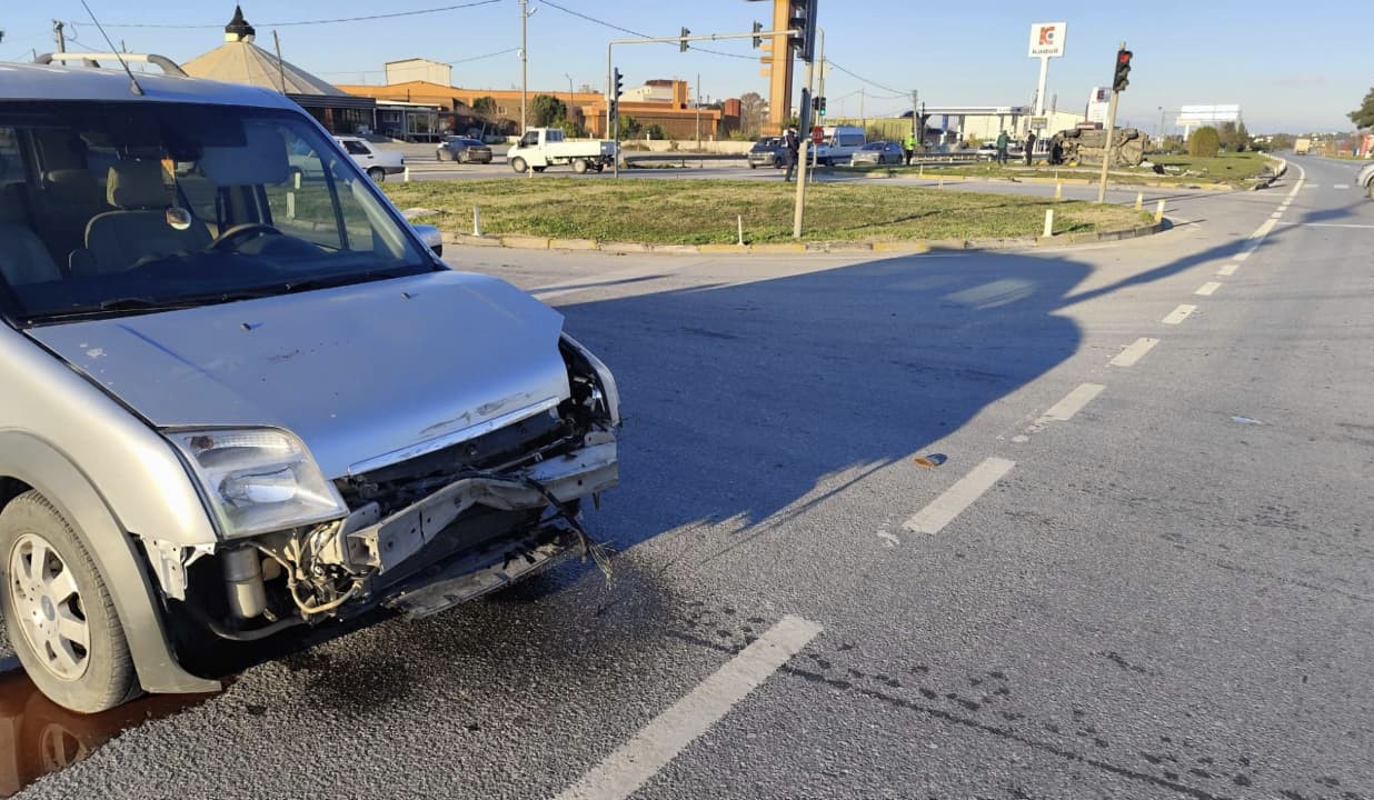 Kırmızı ışık ihlali yapan aracın çarptığı minibüs devrildi: 5 yaralı