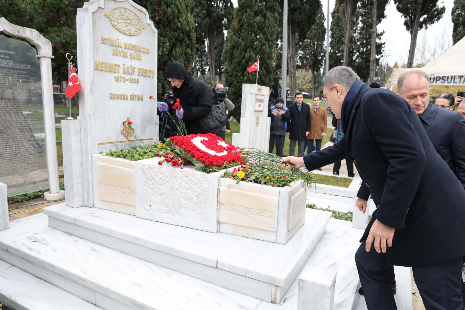 Mehmet Âkif Ersoy, vefatının 89. yıl dönümünde Edirnekapı Mezarlığı’ndaki kabri başında düzenlenen anma töreninde protokol, akademisyenler ve öğrencilerin katılımıyla anıldı.