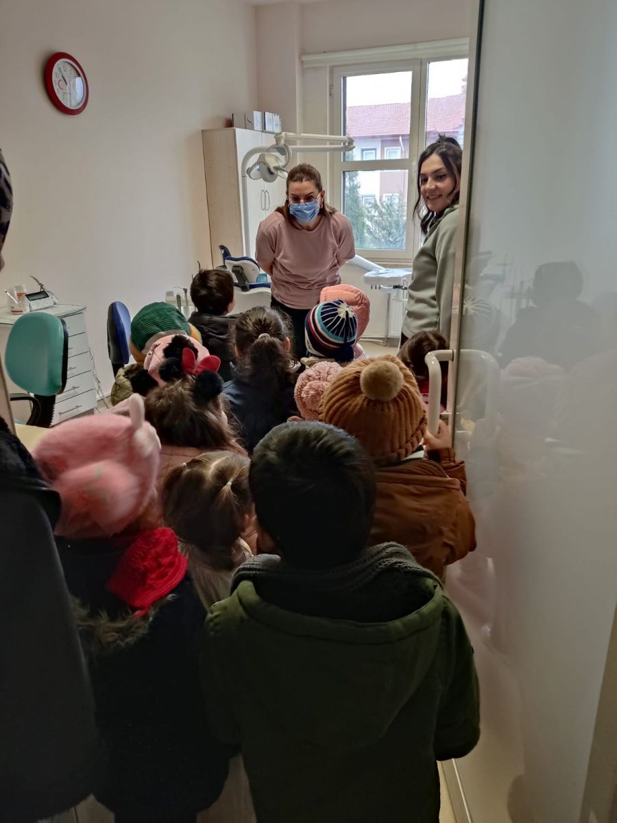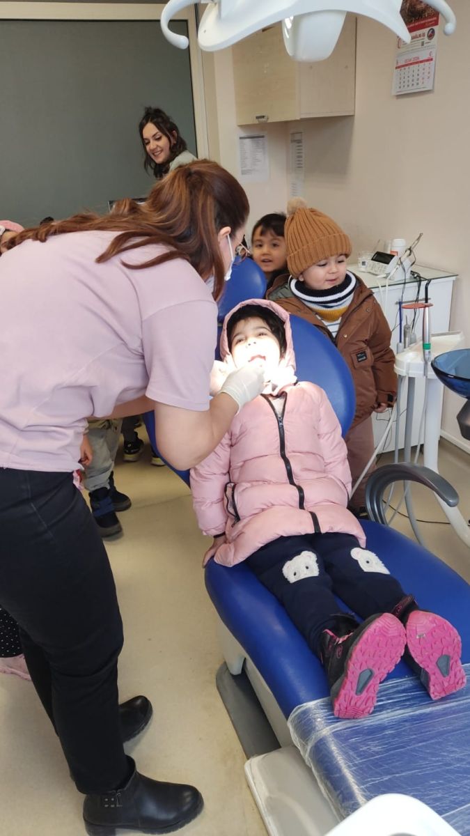Ziyaret sırasında öğrenciler, öğretmenleri ve görevli sağlık personeli eşliğinde diş hastanesini gezerek diş sağlığının önemi hakkında bilgilendirildi. Çocuklara, dişlerin korunması, doğru diş fırçalama alışkanlıkları ve düzenli diş kontrollerinin gerekliliği yaşlarına uygun bir dille anlatıldı.