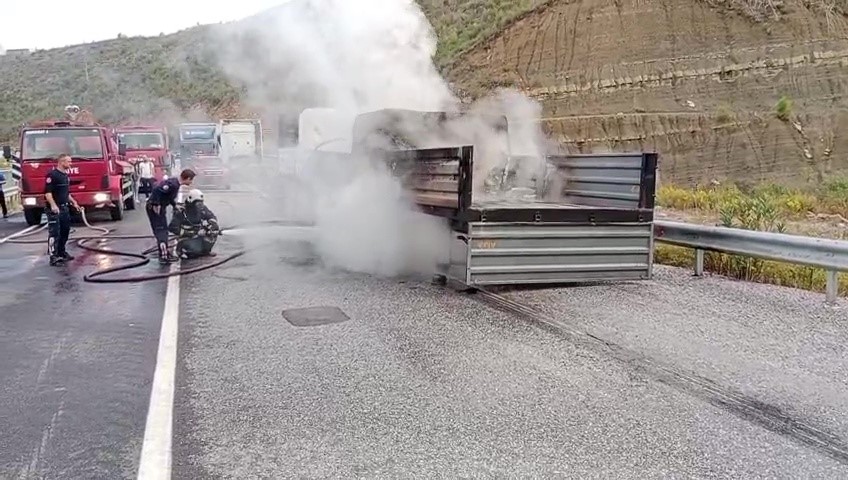 Olay, Konya-Antalya D-687 karayolunda meydana geldi. Edinilen bilgiye göre, Konya’dan Antalya istikametine seyir halindeki Ufuk A.’nın kullandığı 07 BPS 685 plaka, 07 BPM 824 dorse plakalı tırın Demirkapı Tüneli'ni geçtikten sonra dorse kısmından dumanlar yükselmeye başladı. Diğer sürücülerin uyarısı ile dorseden duman yükseldiğini gören tır şoförünün tır ile dorseyi ayırmasının ardından dorseden bir anda alevler yükseldi. Yol trafiğe kapanırken, ihbar üzerine olay yerine Antalya Büyükşehir Belediyesi İtfaiyesi Manavgat Birimi, Trafik Jandarması ve Manavgat İlçe Jandarma Komutanlığı Taşağıl Jandarma Karakolu ekipleri sevk edildi. İtfaiye ekiplerince söndürülen yangında dorse kullanılamaz hale geldi.