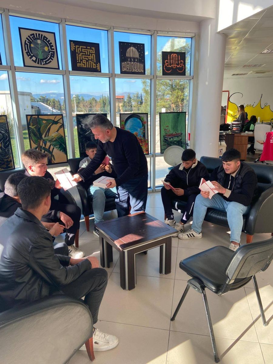 Program kapsamında öğrencilere TDV yayını “Gençler İçin 99 Soruda Peygamberimiz” kitabı hediye edilirken ikramda bulunuldu. Ziyaret, spor salonunda birlikte basketbol oynanarak devam etti.
