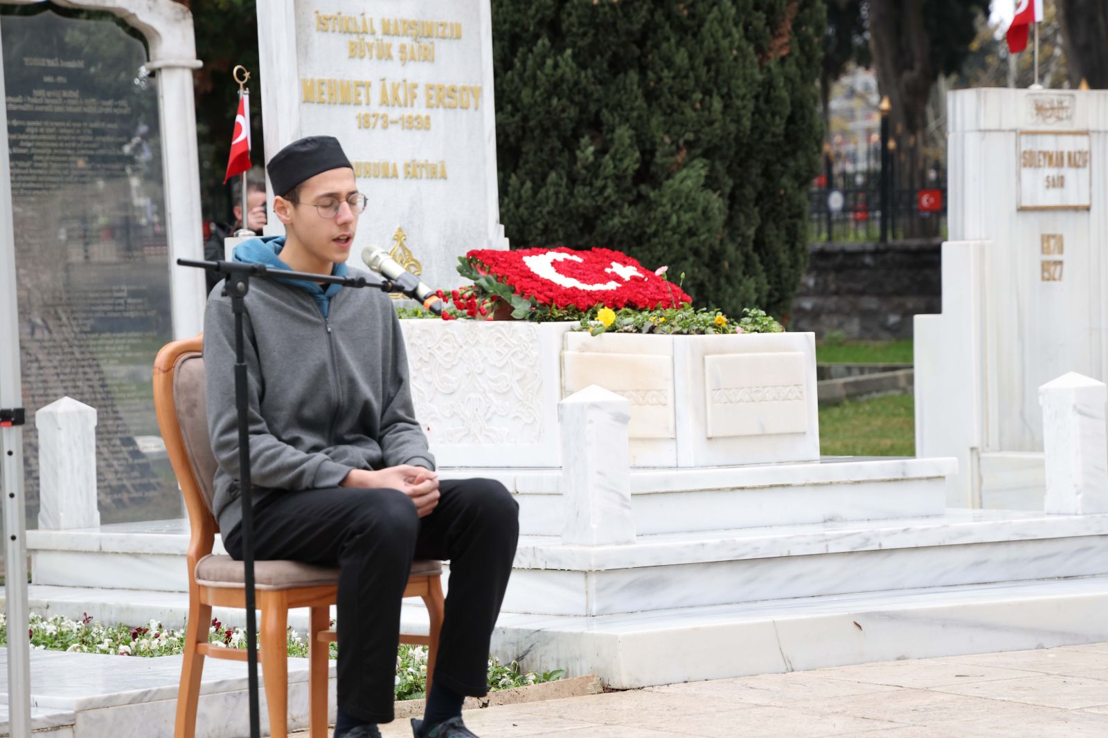 Mehmet Âkif Ersoy, vefatının 89. yıl dönümünde Edirnekapı Mezarlığı’ndaki kabri başında düzenlenen anma töreninde protokol, akademisyenler ve öğrencilerin katılımıyla anıldı.
