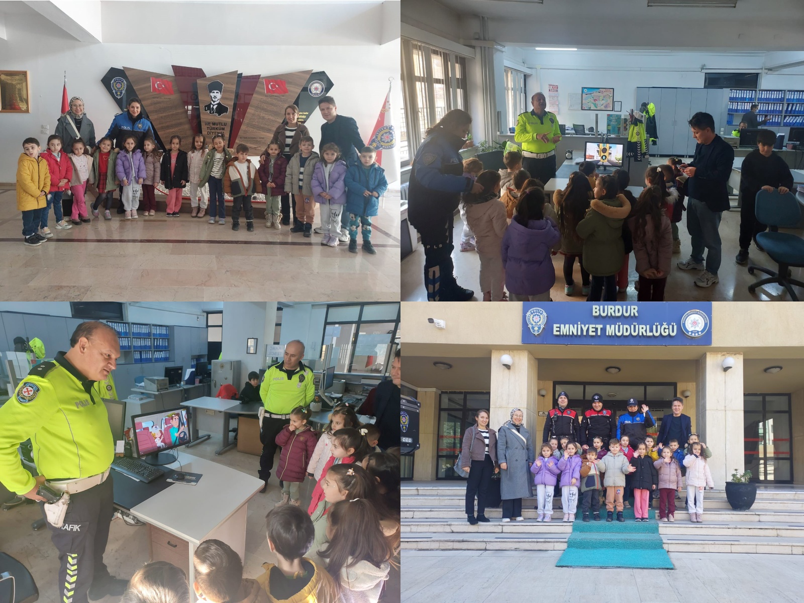 Burdur Şirinevler Anaokulu öğrencileri, burdur il emniyet müdürlüğünü ziyaret etti.
