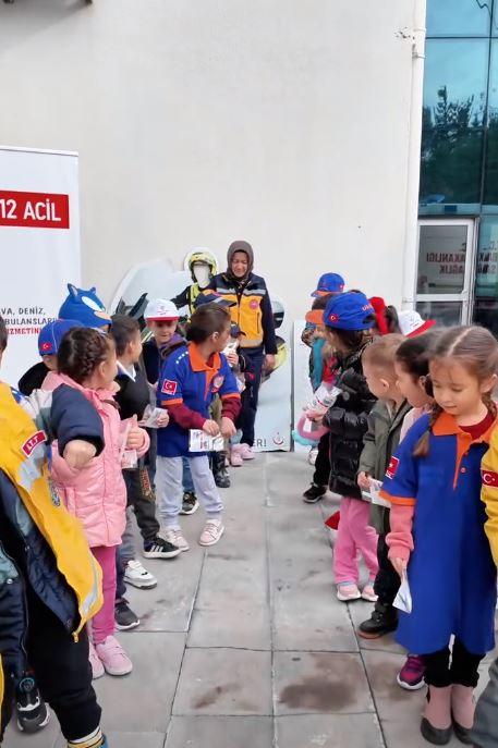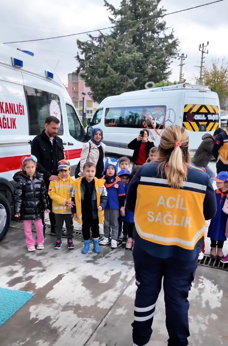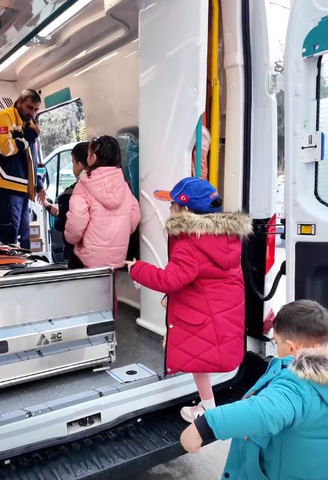 Etkinlikte çocuklara ambulanslara yol vermenin hayati önemi anlatılırken, minikler ambulansın içini gezme fırsatı buldu. Sağlık görevlileri, acil durumlarda kullanılan ekipmanları tanıtarak meslekleri hakkında bilgi verdi.