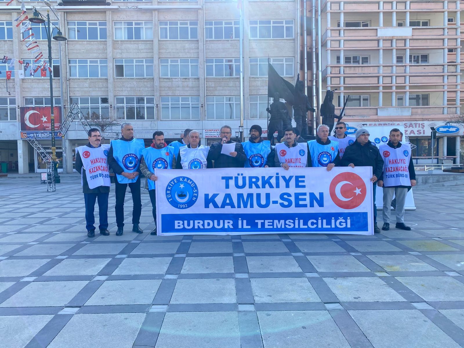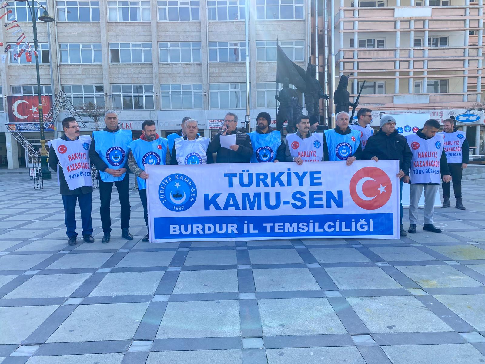 Türkiye Kamu- Sen Burdur İl Temsilcisi Orhan Akın, emekli ve memur maaşlarına yapılan artışlara tepki için basın açıklaması düzenledi. Açıklama, bugün saat 12.45’te Burdur Cumhuriyet Meydanı’nda yapıldı.