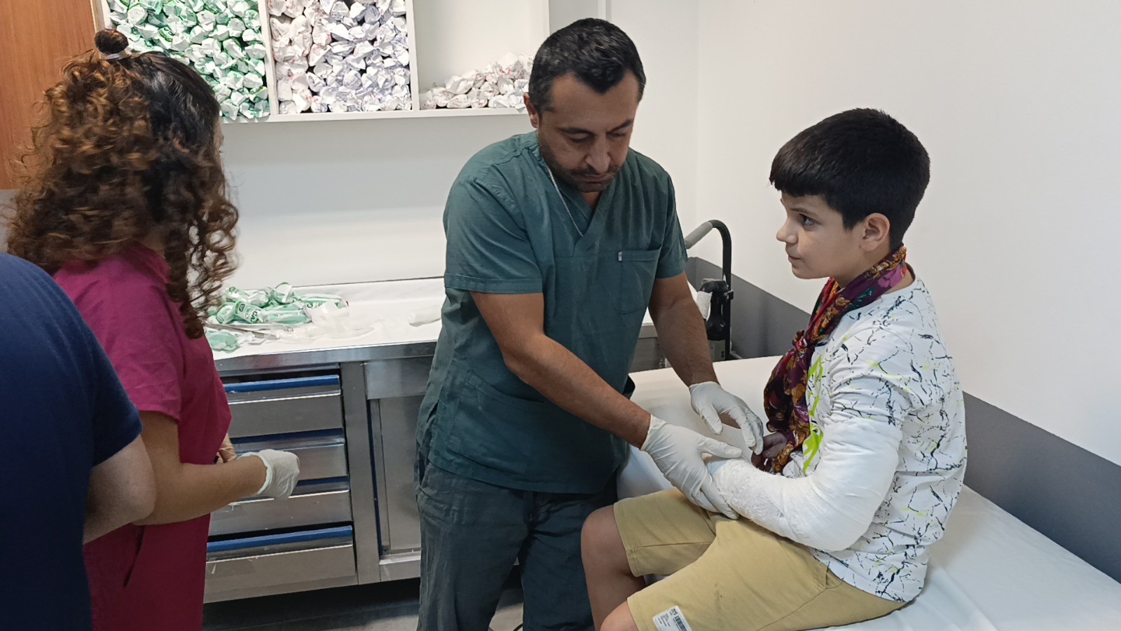 Emirhan’ın kontrolünü yapan ve alçıyı söküp yeniden alçıya alan uzman Dr. Aydın Yıldırım "Sol kolunu kırıktan dolayı alçıya almıştık. Bugün yaptığımız kontrolde şişlik olduğu görüldü, alçı sökülerek yeniden alçı yapıldı. Tedavi sürecimiz devam edecek" dedi.
