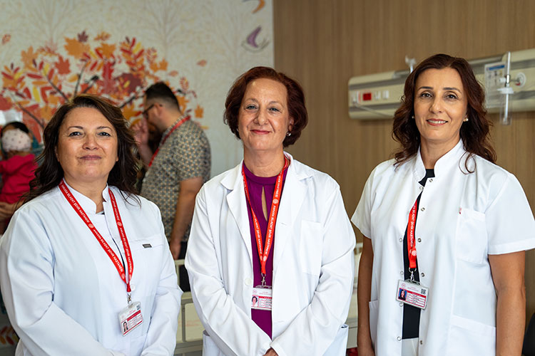 Pediatrik Beyin Cerrahi sorumlu hemşiresi Makbule Yiğit ise bebekler ve ailesine tüm anlarda destek olmak için ellerinden geleni yaptıklarını, emme refleksleri bulunmayan bebeklerin bu yetiyi kazanmaları, fizik tedavi uygulamaları noktasında hemşirelerin her an aileyle olduğunu dile getirdi.