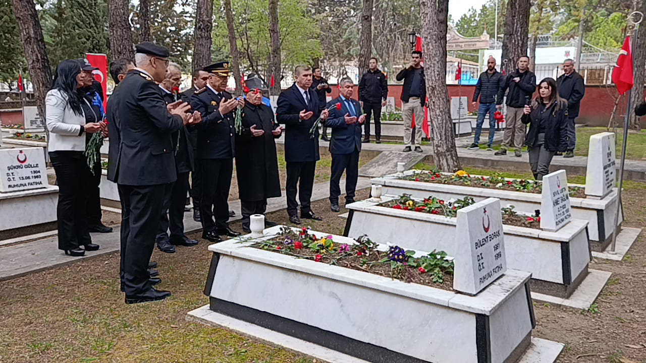 ÇAĞDAŞ BURDUR – Burdur İl Emniyet Müdürü Ahmet Kurt, Türk Polis Teşkilatı’nın 180. kuruluş yıl dönümü etkinlikleri kapsamında Burdur Şehitliği’nde düzenlenen programa katılarak şehit mezarlarını ziyaret etti. 9 Nisan 2026 Perşembe günü saat 11.00’de başlayan törende duygu dolu anlar yaşandı. Program, şehitlik abidesine İl Emniyet Müdürü Ahmet Kurt tarafından çelenk sunulmasıyla başladı. Ardından Ulu Önder Mustafa Kemal Atatürk ve tüm şehitler için bir dakikalık saygı duruşunda bulunuldu, akabinde İstiklal Marşı okundu. Tören kapsamında şehit kabirlerini tek tek ziyaret eden Kurt, mezarlara karanfil bırakarak dua etti. Burdur İl Müftülüğü tarafından okunan Kur’an-ı Kerim tilavetinin ardından tüm şehitler için dualar edildi. Programın ardından basın mensuplarına açıklamalarda bulunan İl Emniyet Müdürü Ahmet Kurt, şehitlerin aziz hatırasını yaşatmanın en büyük sorumluluk olduğunu vurguladı. Türk Polis Teşkilatının kuruluşunun 181’inci yıl dönümünü büyük gururla kutluyoruz. Bu vesileyle bugün bize bu vatanı emanet eden, canı pahasına canlarını hiçe sayarak kanını bu vatan için feda eden bütün aziz şehitlerimizi, aziz hatıralarını anmak ve onlara bu vatanın idamesi için, devletimizin idamesi için, halkımızın birlik ve beraberliği için bütün şer odaklarına karşı mücadelemizde onlar gibi aynı şehadet madalyasını boynumuza takmış olduğumuzu onlara göstermek ve onlara verdiğimiz kutsal oldukları yolda bu devletin güvenliği için canımızı hiçe sayarak görev yapacağımızı bir daha onlara haykırmak için ve onların aziz hatıralarını anmak için burada bulunuyoruz. Allah hepsine gani gani rahmet eylesin. Türk tarihi boyunca hepinizin de bildiği gibi biz her alanda şehit olmaya namzet insanlarız.