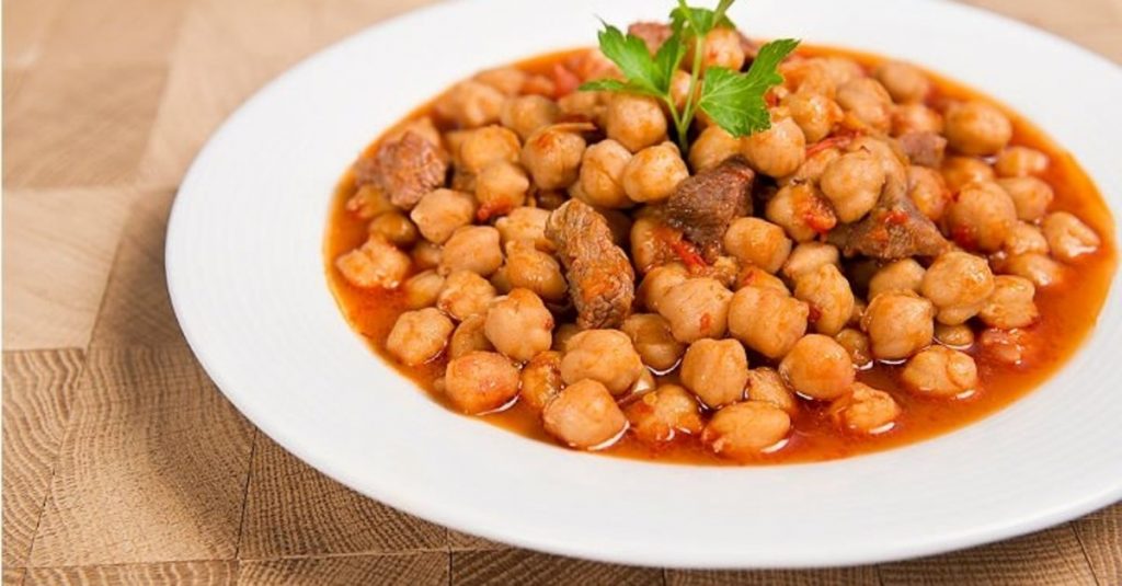 Eti kuşbaşı doğrayarak yumuşayana kadar haşlayın. Soğanları doğrayarak sıvı yağda pembeleşene kadar kavurun. Salçayı, tuzunu, pul biberini ilave edip birkaç dakika daha kavurun. Haşlanmış etleri ve haşlanmış nohutu da ilave ederek bir kaç kez karıştırın. Daha sonra üzerlerine çıkacak kadar  su koyup beraber biraz daha (10-15 dakika kadar) kaynattıktan sonra ocağı kapatıp servis edebilirsiniz.