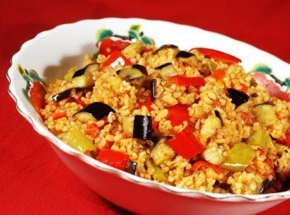 Tenceremize sıvıyağı ekleyip doğradığımız soğanlarla birlikte soteleyelim. Daha sonra doğradığımız yeşil ve kırmızı biberleri ekleyip kavurmaya devam edelim. Önceden doğrayıp suda 10 dk kadar beklettiğimiz patlıcanları süzüp tencereye ilave edip kavurmaya devam edelim. En son küp küp doğranmış domatesleri de ekleyip karıştıralım. Salçaları da ilave edelim ve sebzeler yumaşayana kadar pişirelim. Pişen sebzelere önceden yıkadığımız bulgurları ekleyelim. Tuzunu baharatlarını suyunu eklediğimiz tencerenin kapağını kapatarak kısık ateşte pişmeye bırakalım. Suyunu çeken pilavımızı ocaktan alıp biraz dinlendirdikten sonra pilavımızı afiyetle tüketebiliriz.