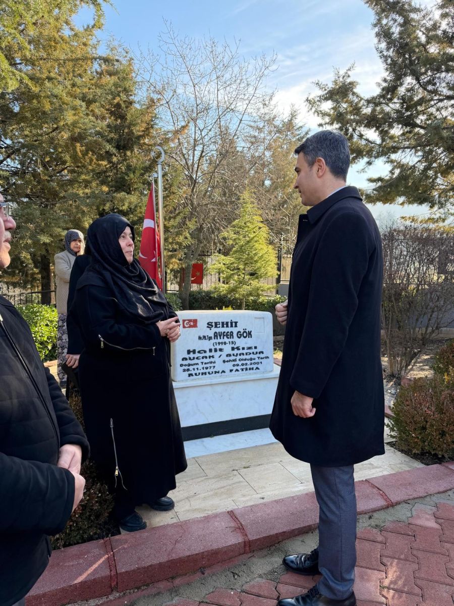 Programa katılan Bucak Kaymakamı Can Kazım Kuruca, Şehit Pilot Teğmen Ayfer Gök başta olmak üzere şehitlikte bulunan tüm aziz şehitlerin mezarlarını ziyaret ederek dua etti.
