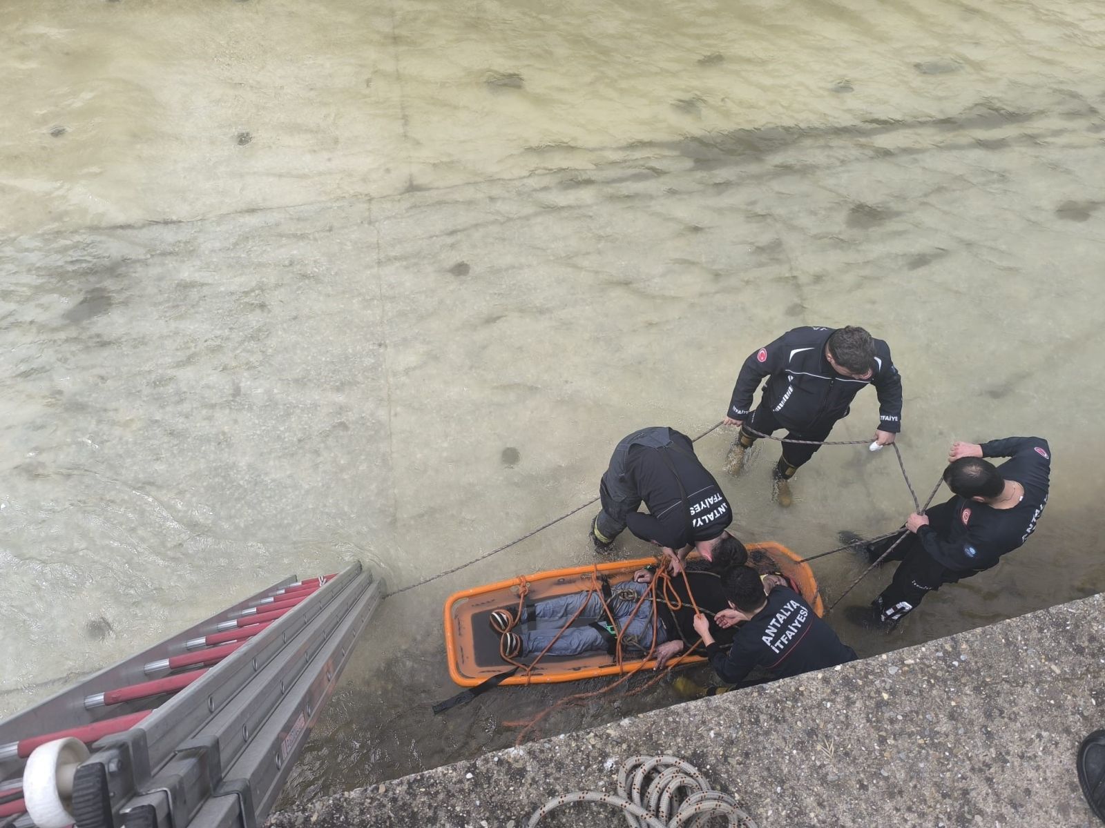 Antalya'nın Alanya ilçesinde dengesini kaybederek çaya düşen şahıs, ekiplerin çalışmasıyla bulunduğu yerden çıkarılarak hastaneye kaldırıldı.