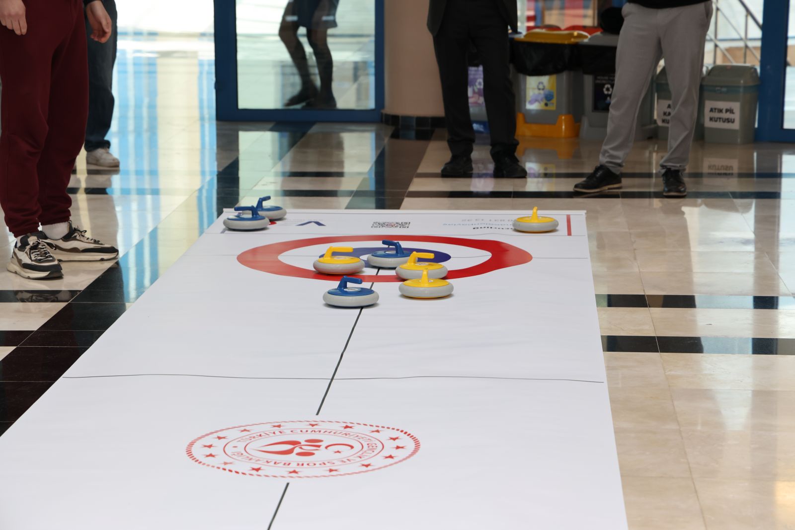 Rektörlük giriş katında yapılan etkinlik, Öğr. Gör. Dr. Mine Ömercioğlu ve Öğr. Gör. Nida Nur Ekici’nin öncülüğünde düzenlenirken, Spor Bilimleri Fakültesi 4. sınıf öğrencileri Şeyma Akyüz, Murat Can Topaçoğlu, Selda Cabar ve Recep Seymen Yücetin'de floor curling hakkında bilgi vererek katılımcılara rehberlik etti.