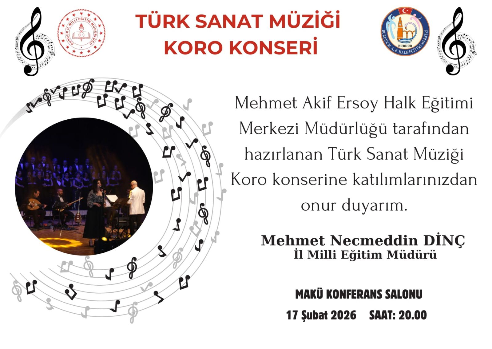 İl Milli Eğitim Müdürü Mehmet Necmeddin Dinç, tüm vatandaşları konsere davet ederek katılımlarından onur duyacaklarını ifade etti.