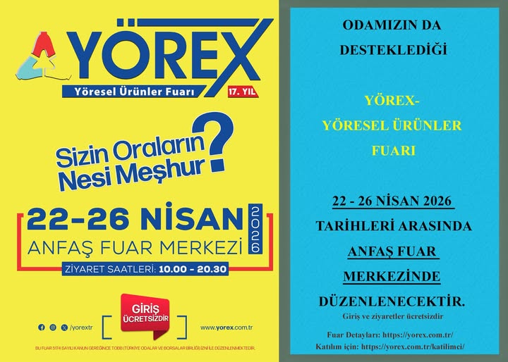 Antalya Ticaret Borsası (ATB) öncülüğünde Türkiye Odalar ve Borsalar Birliği’nin (TOBB) desteğiyle düzenlenen Yöresel Ürünler Fuarı YÖREX, 22-26 Nisan 2026 tarihlerinde ANFAŞ Fuar Merkezi’nde yapılacak. “Sizin Oraların Nesi Meşhur” sloganıyla düzenlenecek YÖREX, Anadolu’nun coğrafi işaretli yöresel ürünlerini Antalya’da bir araya getirecek.