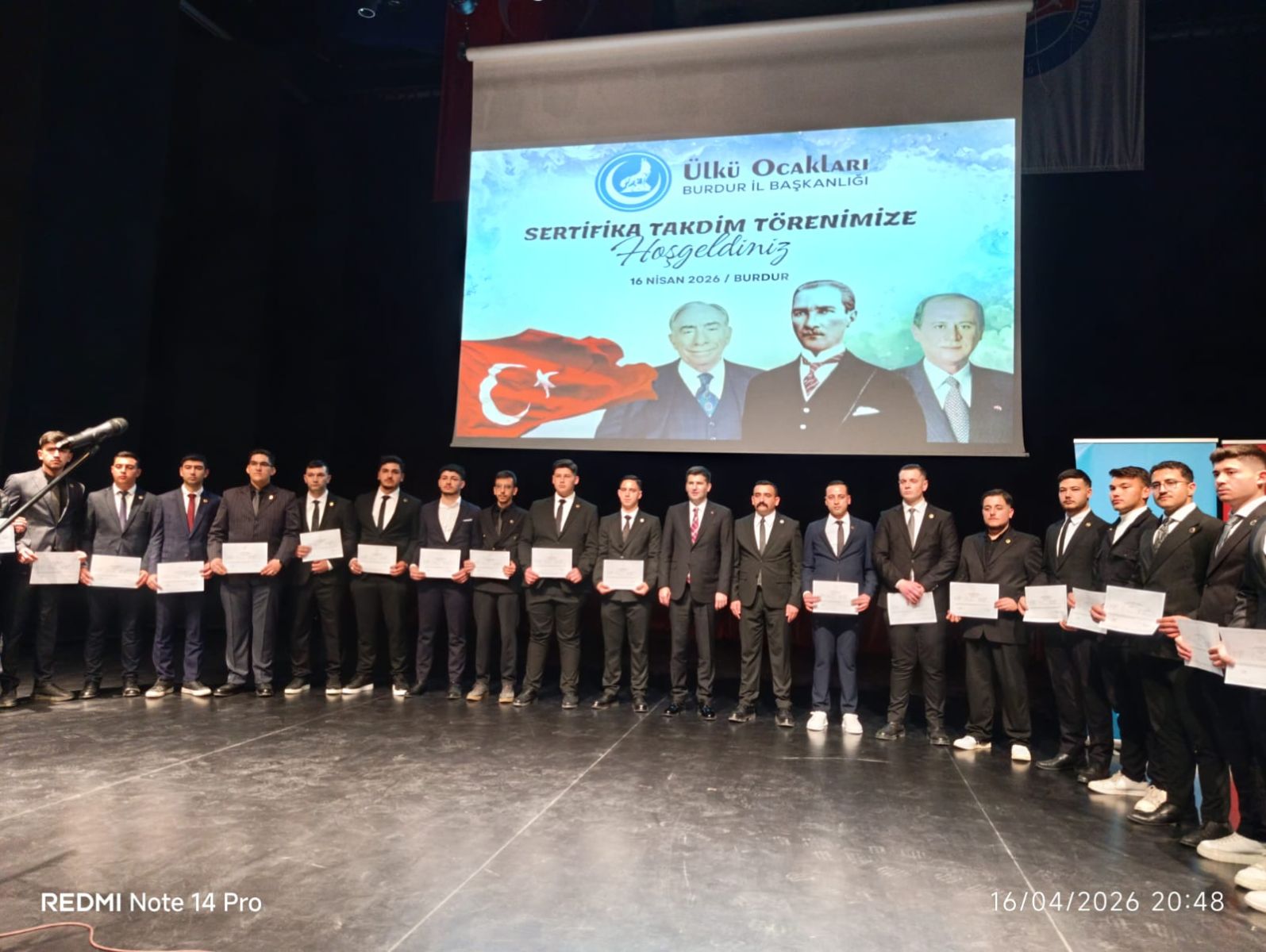 Ülkü Ocakları Genel Başkanı Ahmet Yiğit Yıldırım, Ülkü Ocakları Burdur İl Başkanlığının Burdur Mehmet Akif Ersoy Üniversitesi Sergi ve Konferans Salonunda 16 Nisan 2026 Perşembe günü saat 20.00’da düzenlediği 'Sertifika Takdimi Töreni'ne katılmak üzere Burdur a geldi.