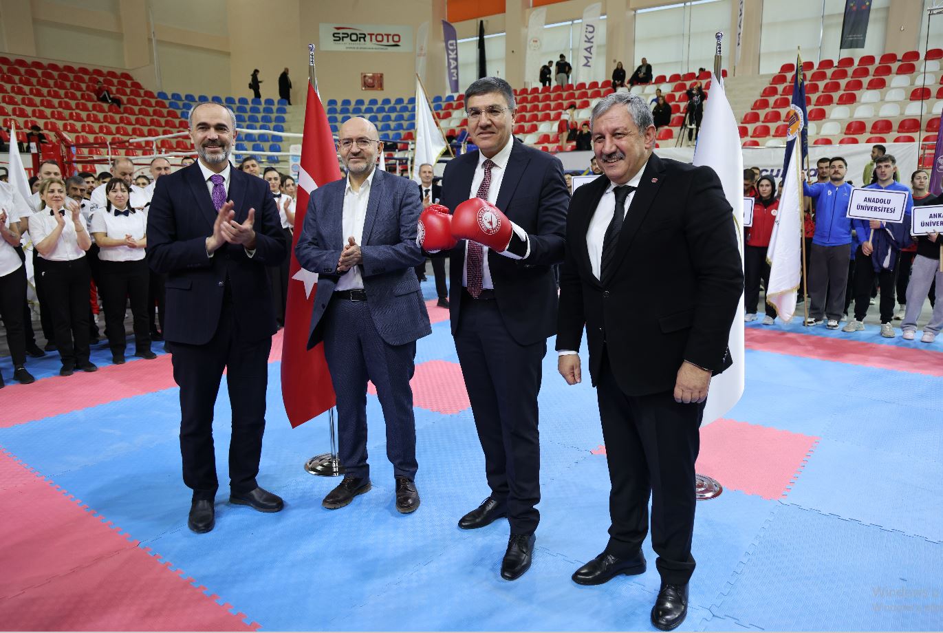 Sporcuların bayrak gösterimiyle başlayan törende ilk konuşmayı Kick Boks Federasyonu Başkanı Salim Kayıcı yaptı. Kayıcı, organizasyona ev sahipliği yapan MAKÜ’ye teşekkür ederek, sporcular ve teknik heyetlerin kamp ortamından son derece memnun kaldığını ifade etti. Üniversiteler arası bu tür organizasyonların önemine dikkat çeken Kayıcı, dereceye giren sporcuların ilerleyen süreçte Avrupa Şampiyonası’nda da ülkemizi başarıyla temsil edeceklerine inandığını belirtti.